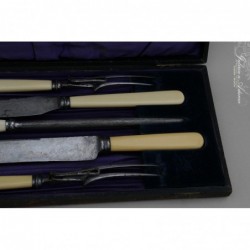 SHEFFIELD XIX WIEK-OKAZAŁY KOMPLET MYŚLIWSKI Z RĄCZKAMI Z KOŚCI W ETUI- PIĘKNY I STYLOWY !!