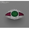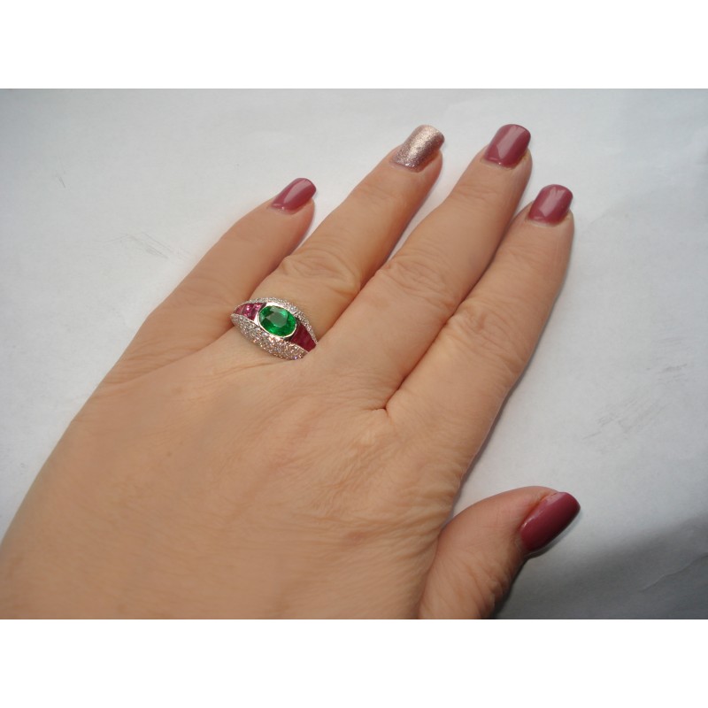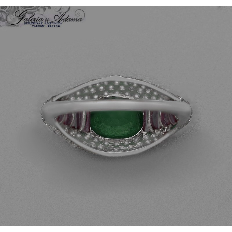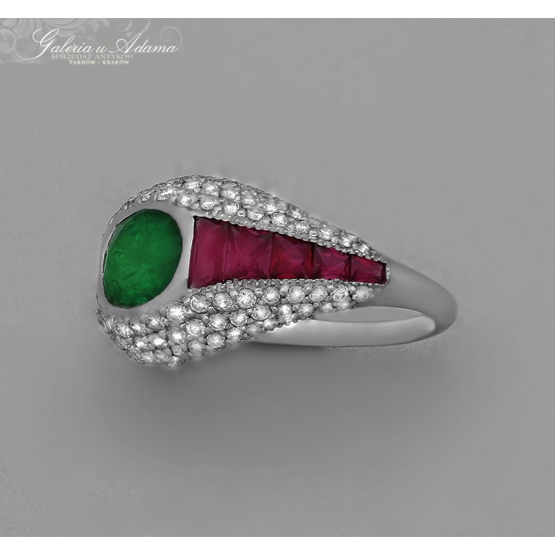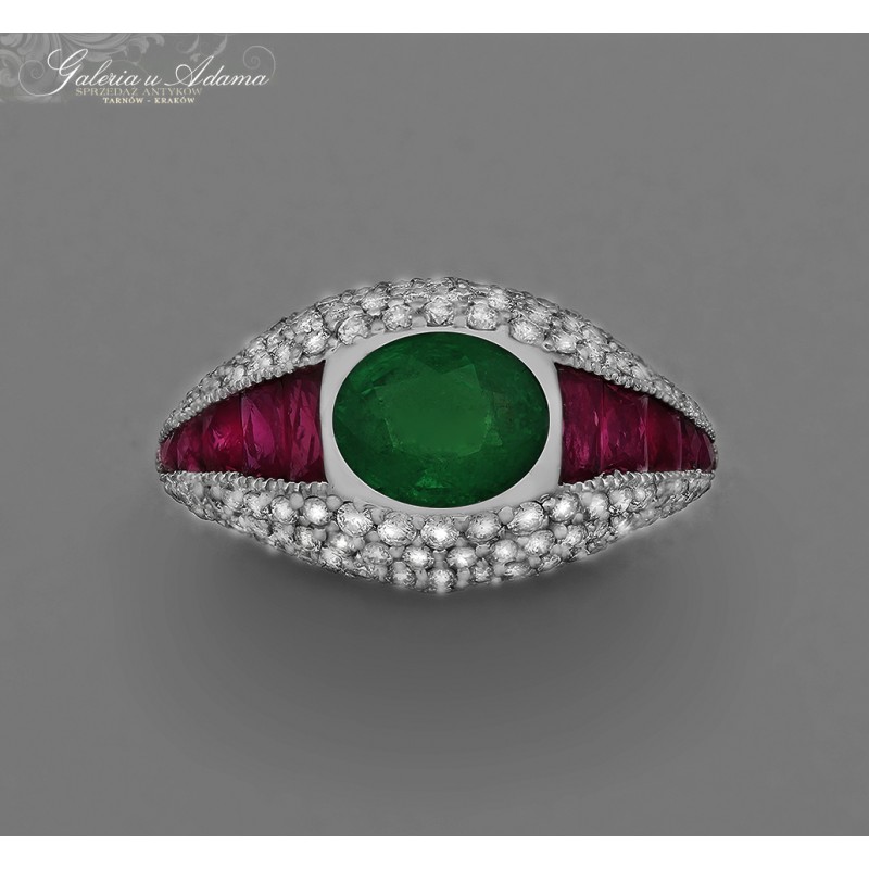 Pierścionek złoty-18 k wysadzany brylantami-1,00 k, Szmaragdem naturalnym- 1,65 k i Rubinami-1,60 k za 50% wartości wyceny !!