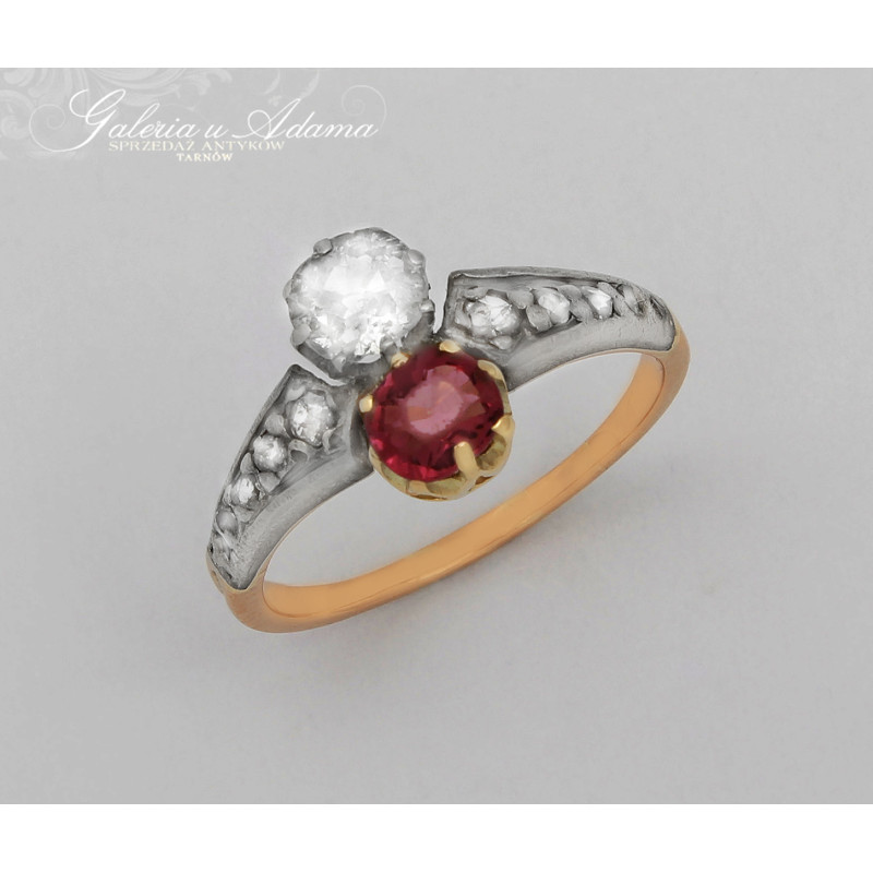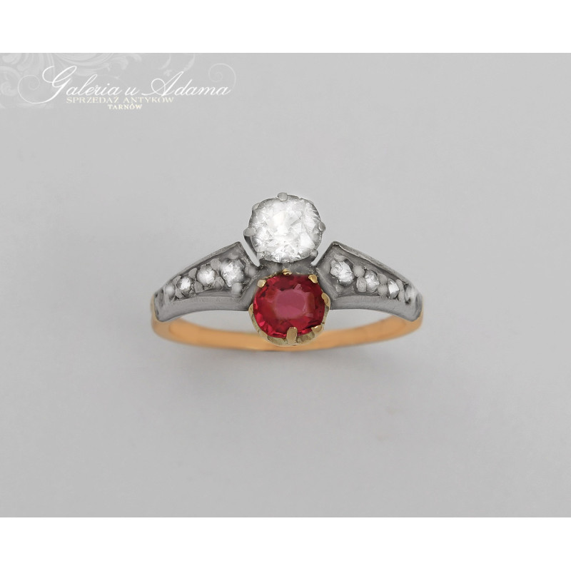 Pierścionek złoto-platynowy wysadzany brylantami- 0,50 k (w tym kamień centralny~0,40 k) i Rubinem za 60% wartości wyceny!!
