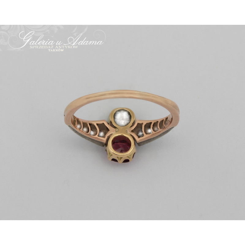 Wykończenie; 10 x diament naturalny-rozetowy, łączna masa ~0,10 karata i RUBIN syntetyczny !