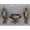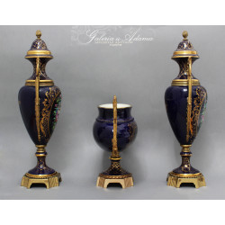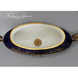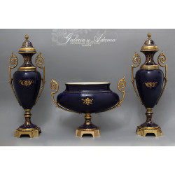 FRANCJA „ LIMOGES ” Porcelanowy zestaw trzech waz-Królewski kobalt -RĘCZNIE MALOWANE I ZŁOCONE.