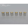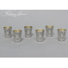 Dodatkowy opis: komplet 6-ściu kieliszków z wnętrzami złoconymi, dekorowany misternymi grawerunkami.