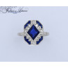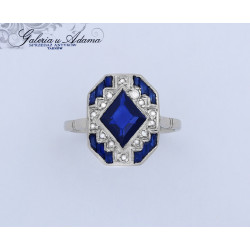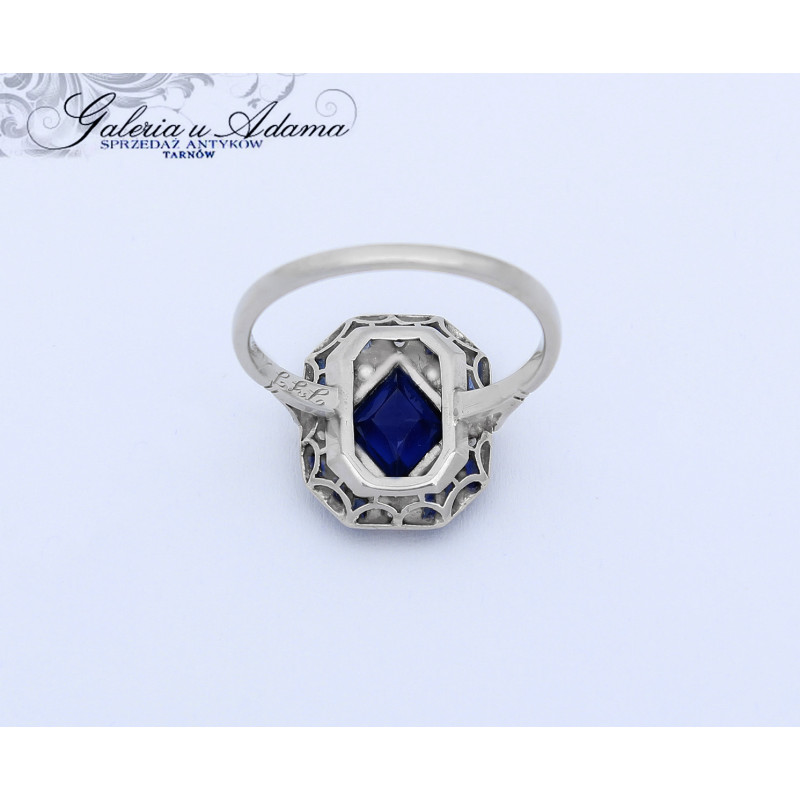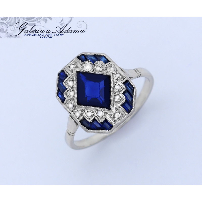 Pocz XX w-Pierścionek złoty-18 k wysadzany brylantami- 0,10 k i Szafirami (stara synteza)-Piękny !